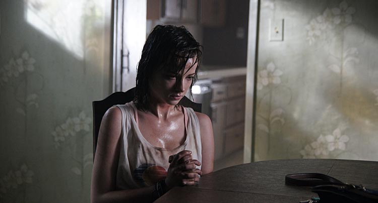 At The Devil’s Door/La poarta Diavolului (Nicholas McCarthy) e aproape un all-in-one: avem casă bântuită, o leapșă a posedaților, copilul diabolic și pactul faustic. McCarthy reușește să combine toate astea schimbând protagonista cam o dată la jumătate oră și sacrificând bună parte din coerență. Cu riscul de a provoca confuzie, filmul curge pe mai multe planuri temporale care converg, de obicei, cu ocazia unei morți ce implică suspendarea posedatei în aer.